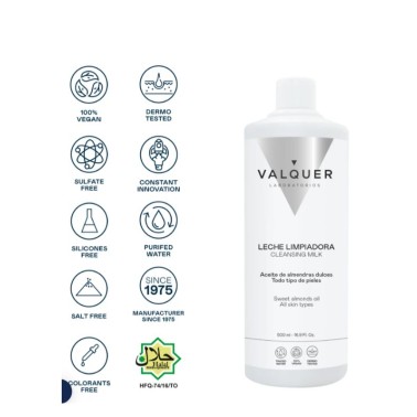 La Leche Limpiadora 500 ml de Valquer Origins limpia y desmaquilla suavemente la piel, eliminando impurezas sin resecar.