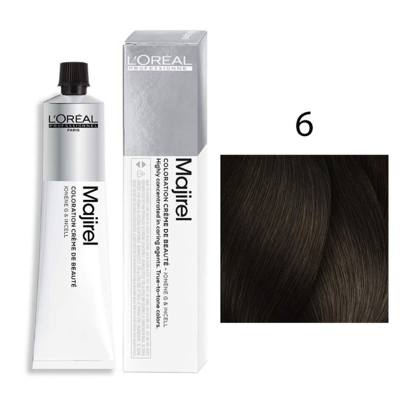 Coloración profesional Majirel 6 rubio oscuro natural. Aporta un color uniforme, natural y duradero con brillo profesional. Tubo de 60 ml. Uso profesional.