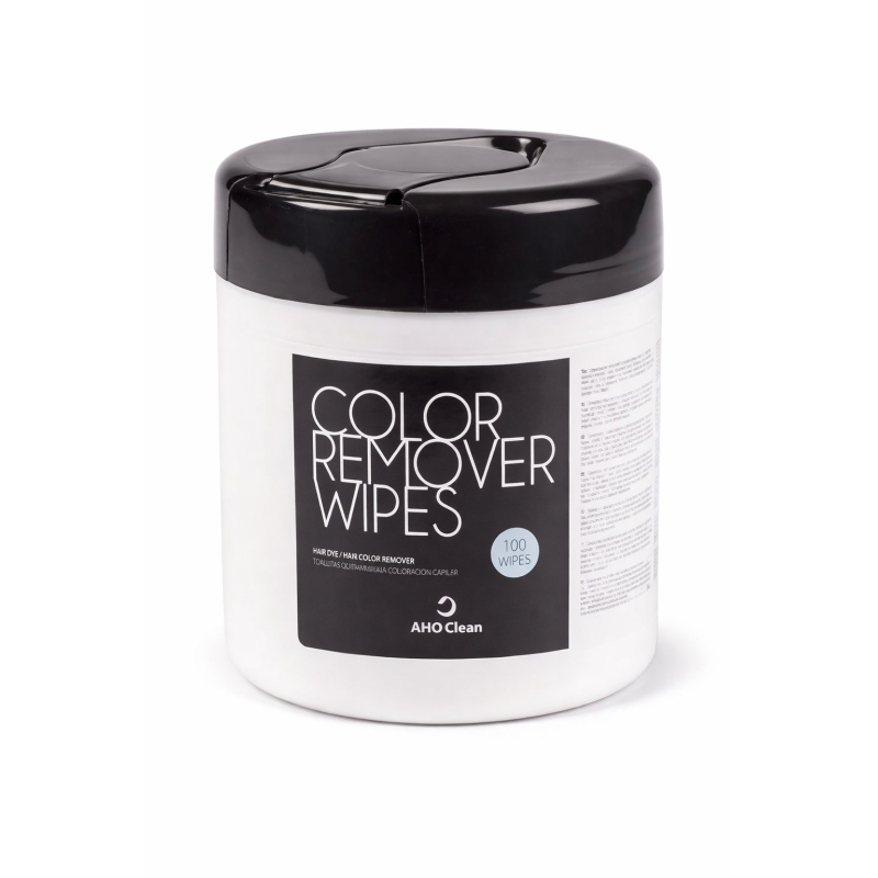 Toallitas quitatintes Color Remover Wipes de AHO Clean. Eliminan fácilmente restos de tinte y coloración de la piel sin irritar. Imprescindibles en servicios de coloración profesional.