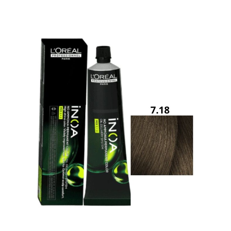 INOA 7.18 L’Oréal Professionnel – Rubio Ceniza Irisado Sin Amoniaco 60 ml