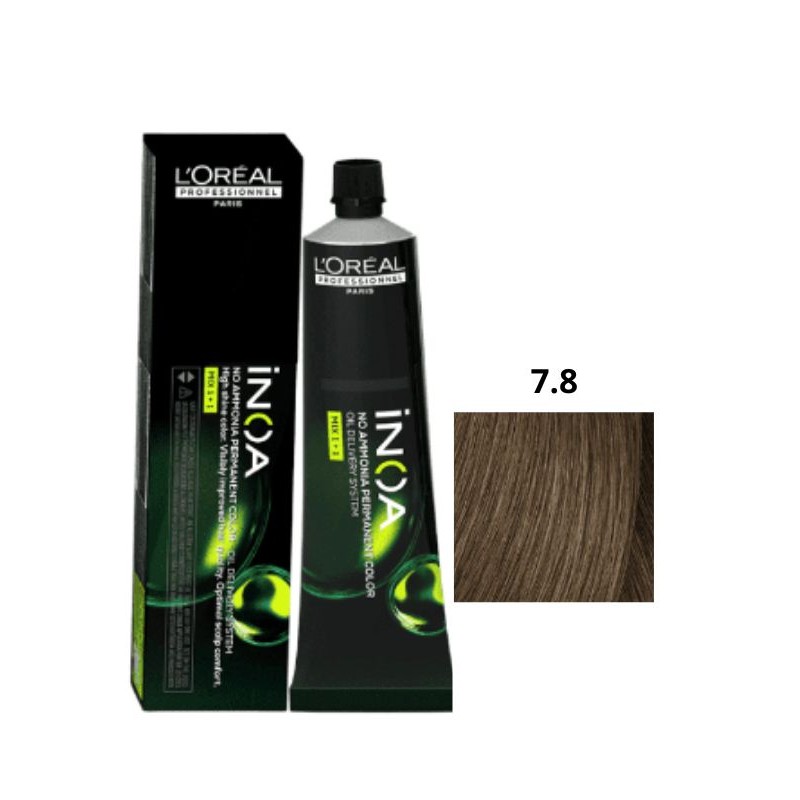 Coloración profesional iNOA 7.8 sin amoniaco, con tecnología ODS potenciada por aceite. Color permanente ultra brillante, máximo confort del cuero cabelludo y resultados de alta precisión. 60 ml.