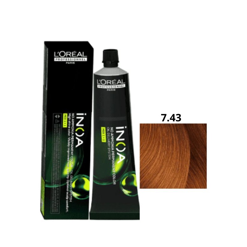 INOA 7.43 L’Oréal Professionnel – Rubio Cobrizo Dorado Sin Amoniaco 60 ml